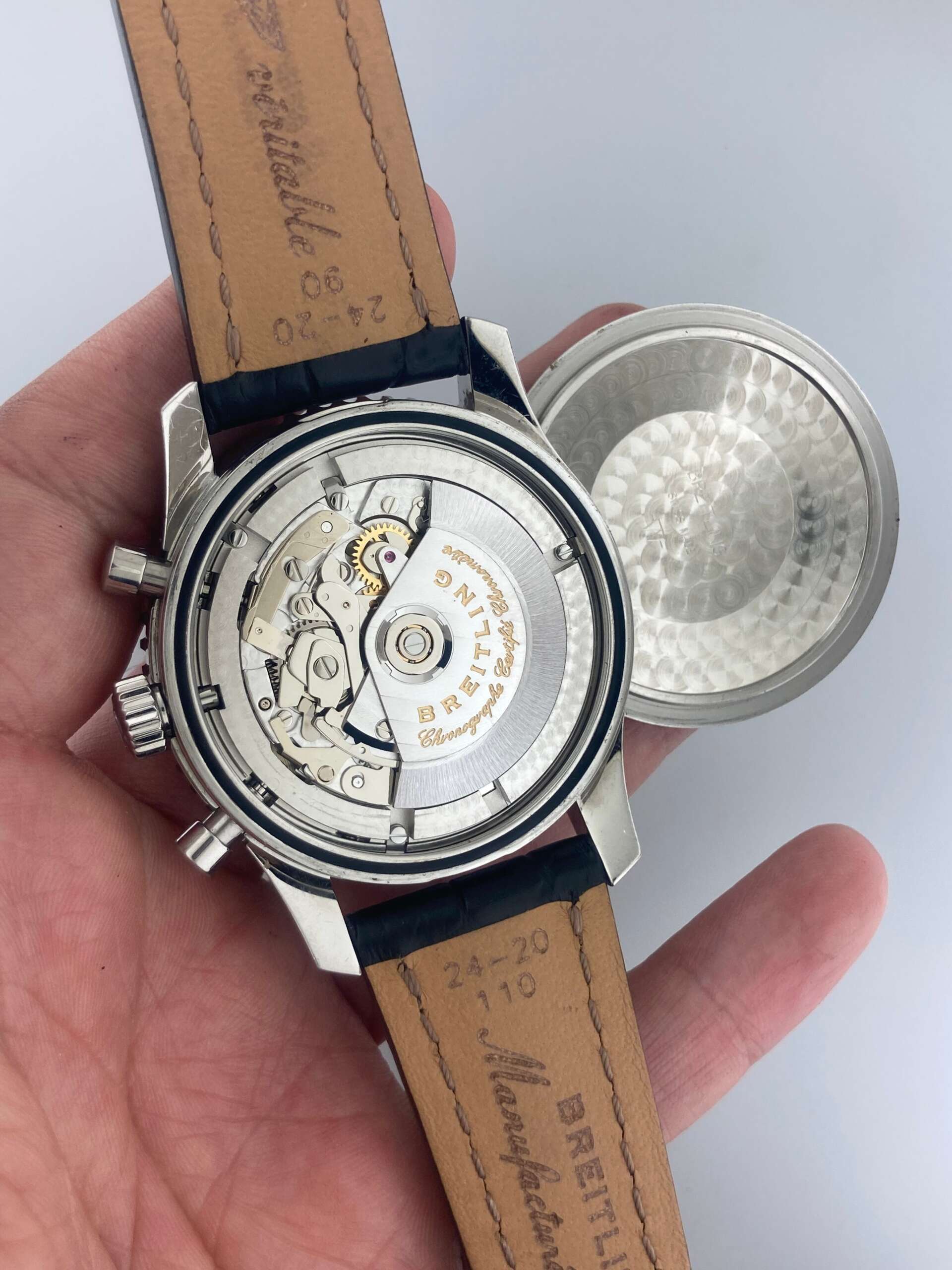 Movement: Automatic Self-winding, Caliber: Breitling 24 Chronograph and GMT function.