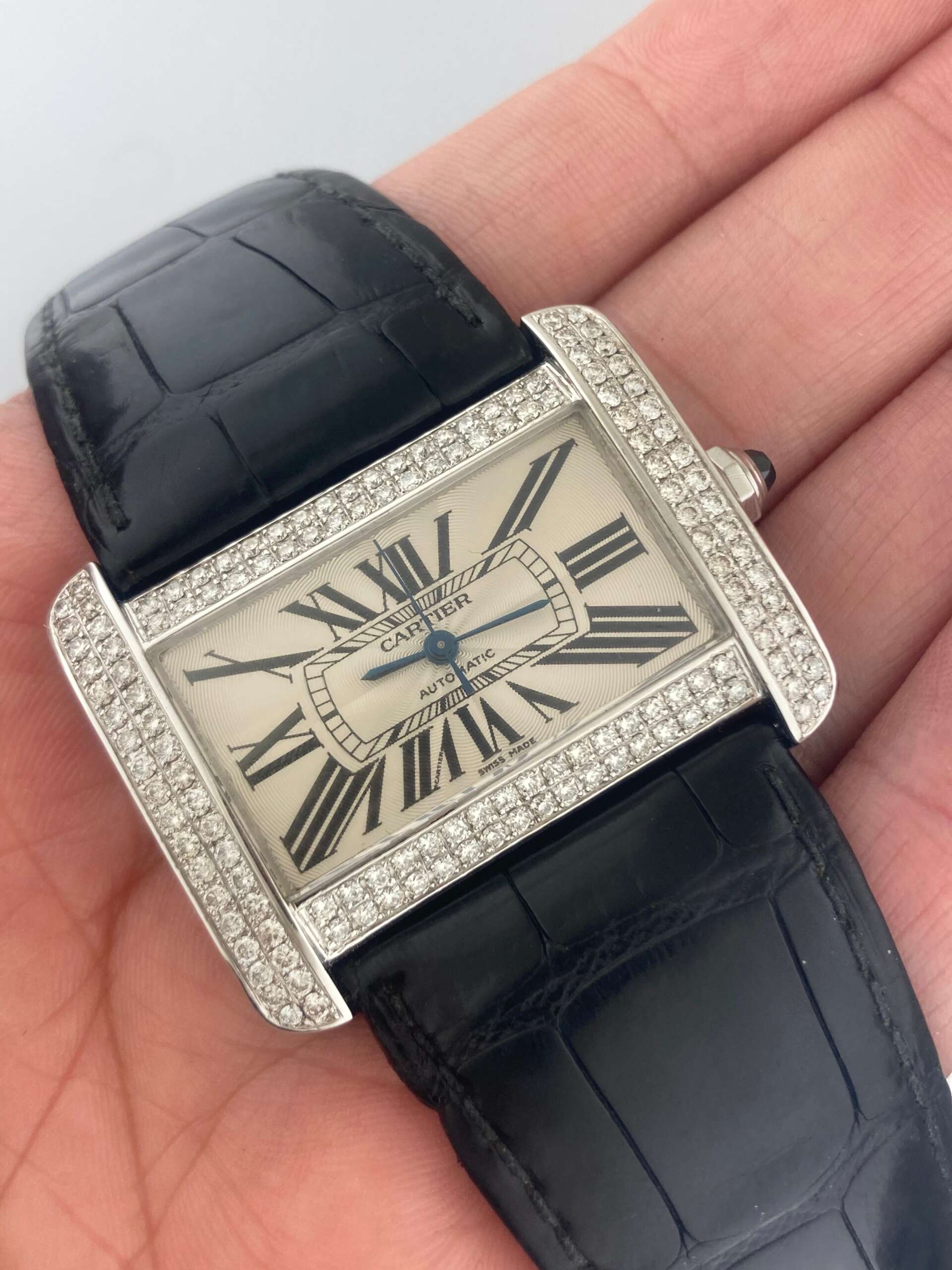 Cartier Tank Divan 38mm Steel 2612 Full Diamonds Automatic White Dial # W6300755