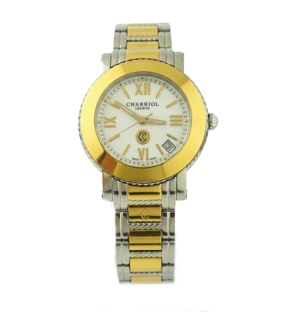Charriol #P33 Parisii 32mm Date White Roman Dial Quartz Ladies P33SY1.0