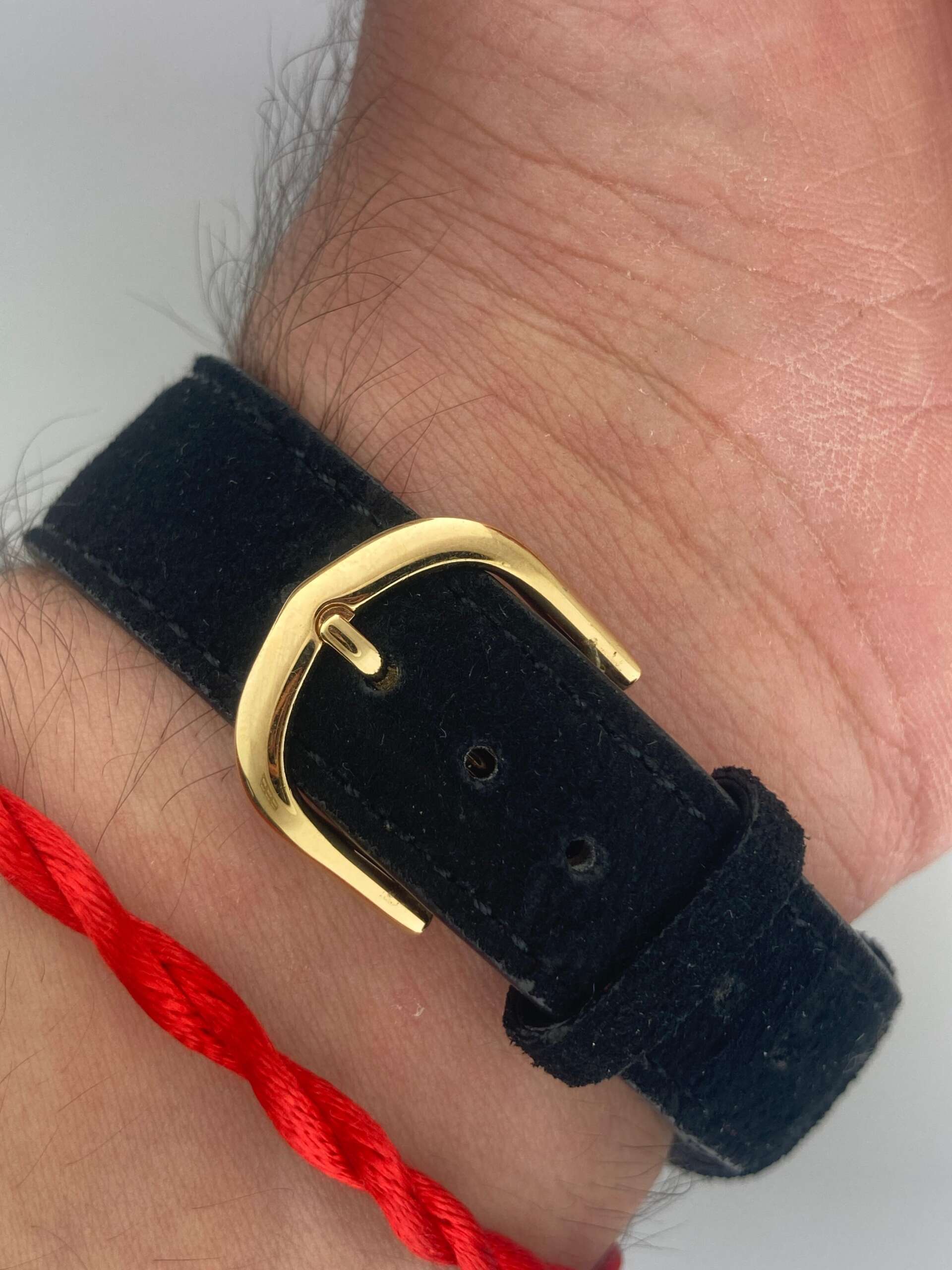 Bracelet/Strap: Black Suede Leather Two-Piece Strap