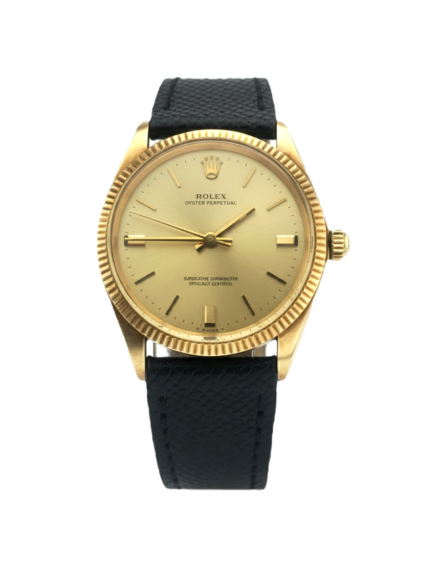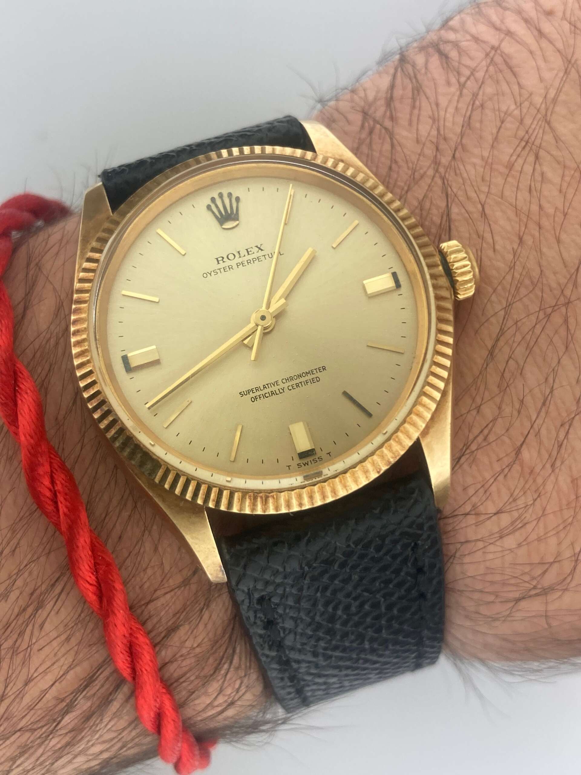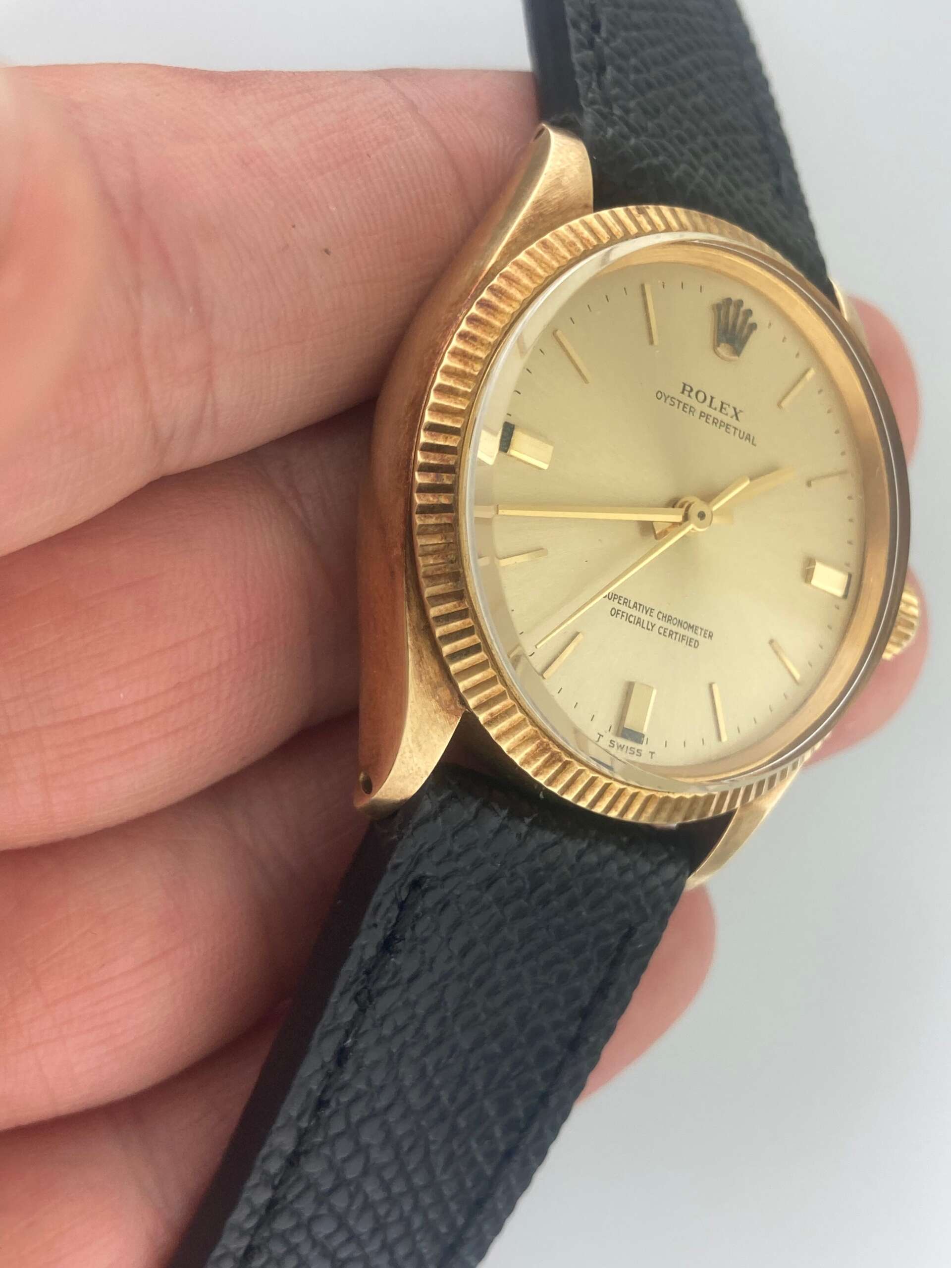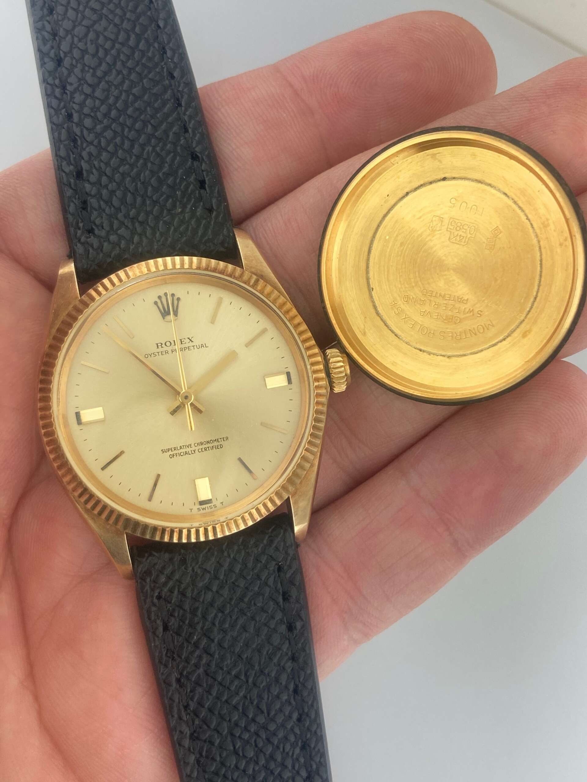Rolex 34mm 1005 Oyster Perpetual Solid Yellow Gold Mint Automatic Champagne Dial