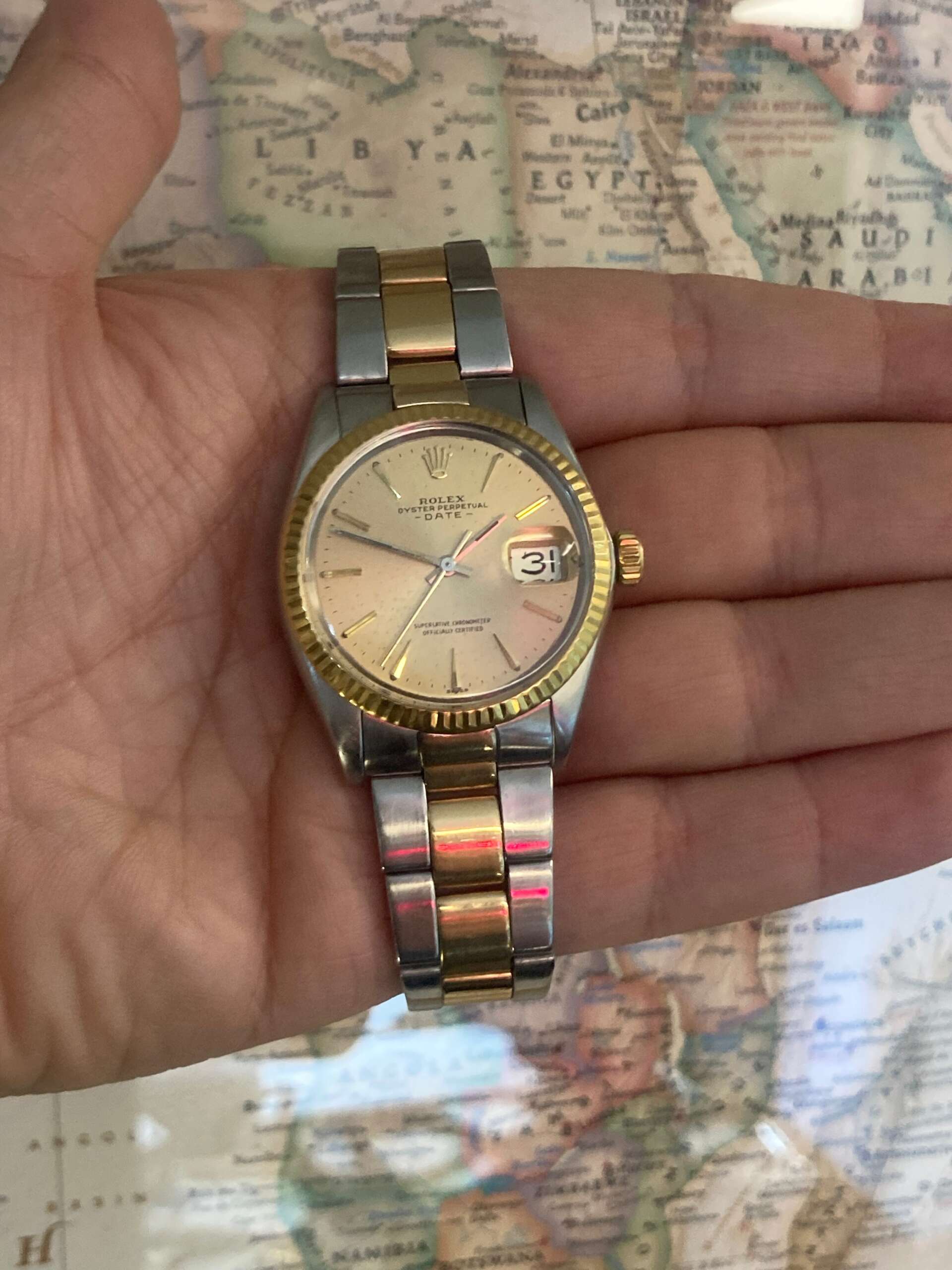 Rolex 34mm 1500 Oyster Perpetual Date 18k Yellow Gold & Steel Champagne Dial