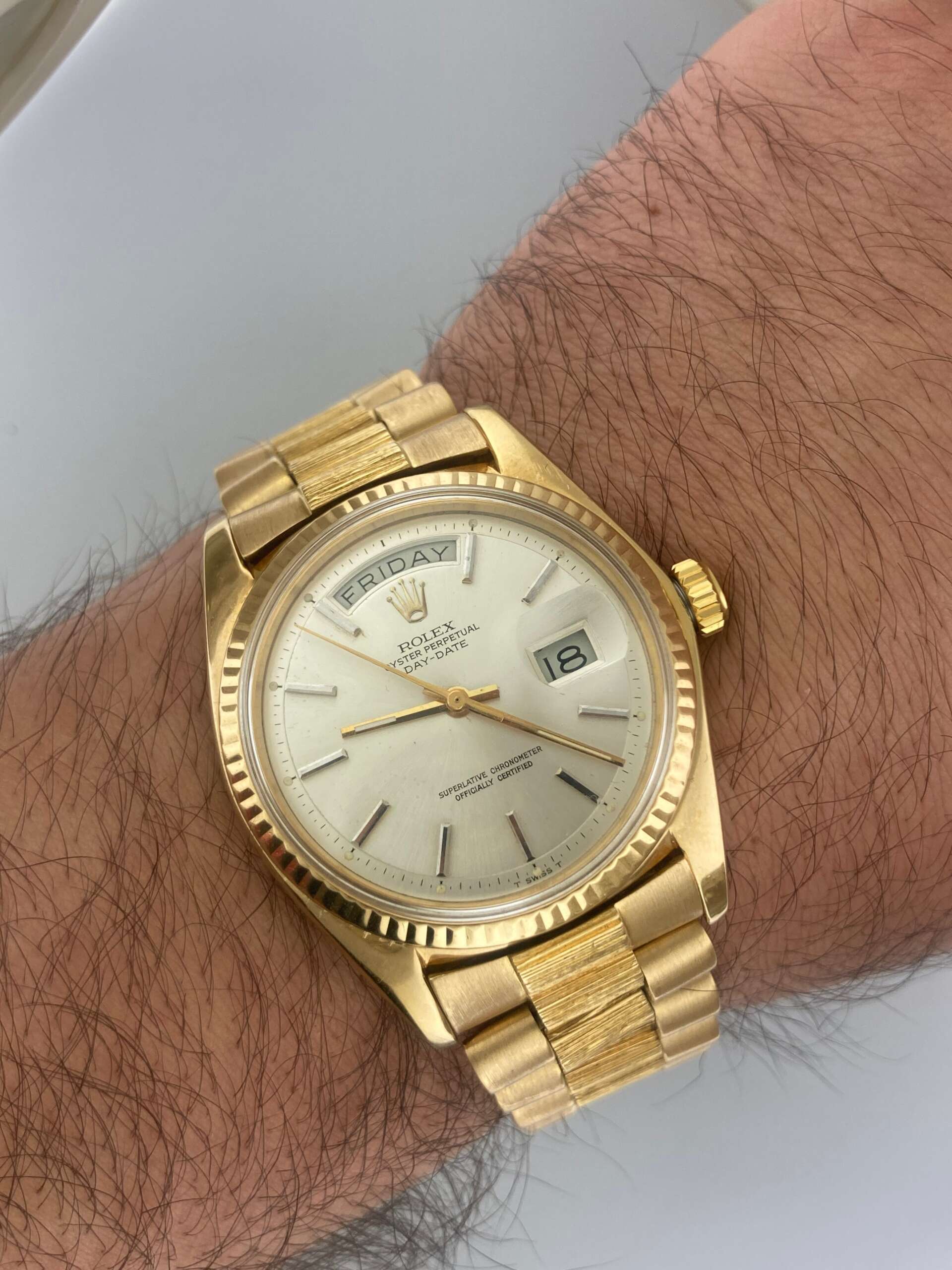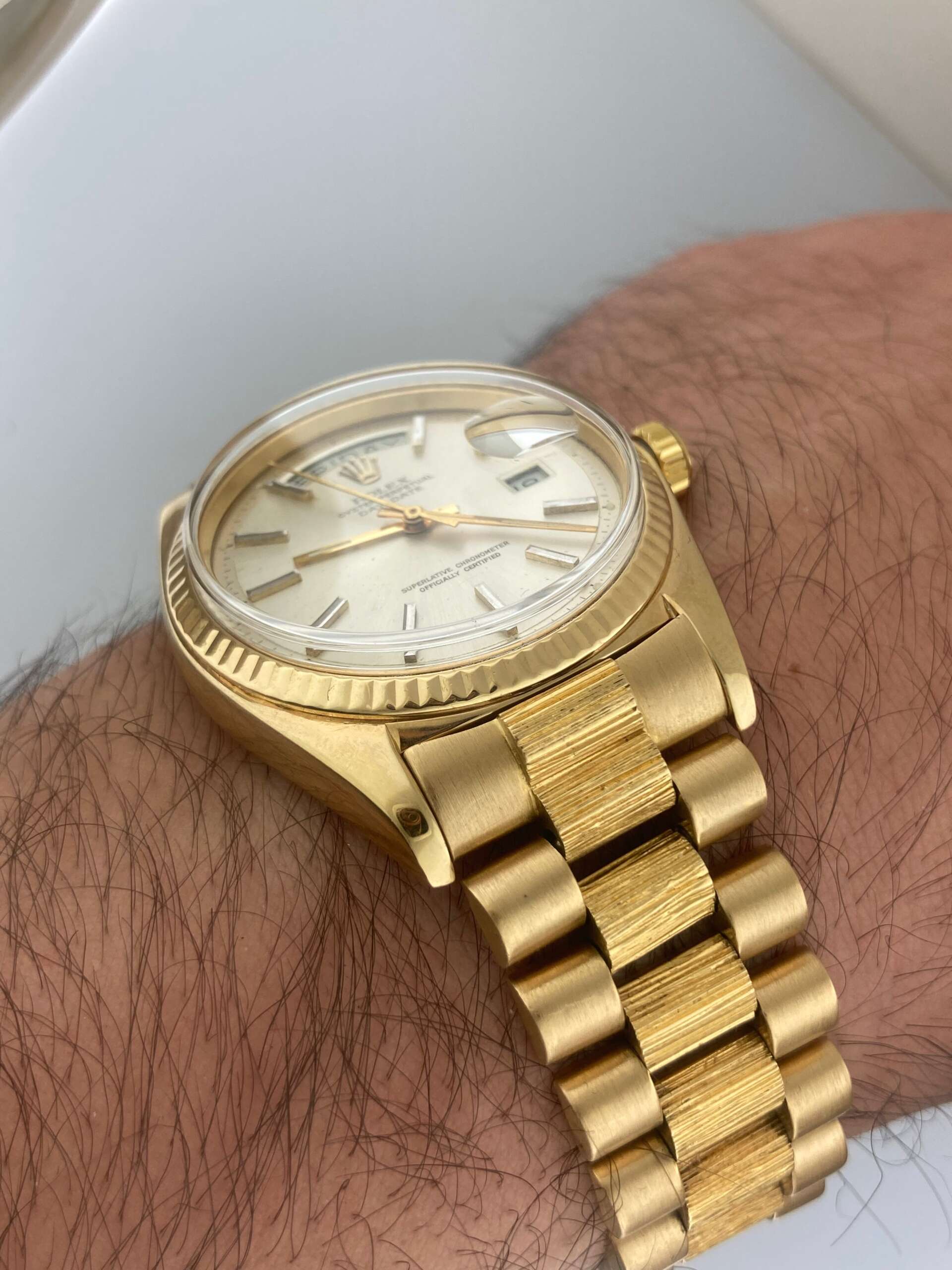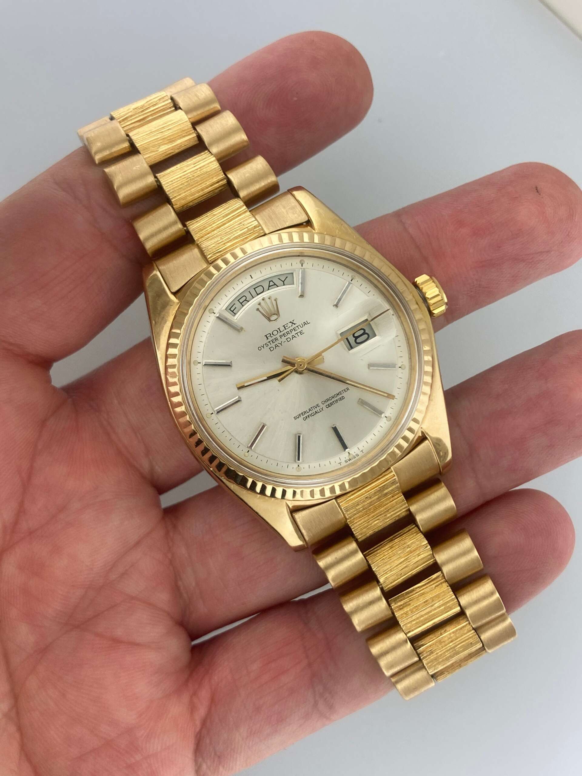 Rolex 36mm President 1803 Day Date 18K Yellow Gold 1807 Bark DayDate Vintage 1970s