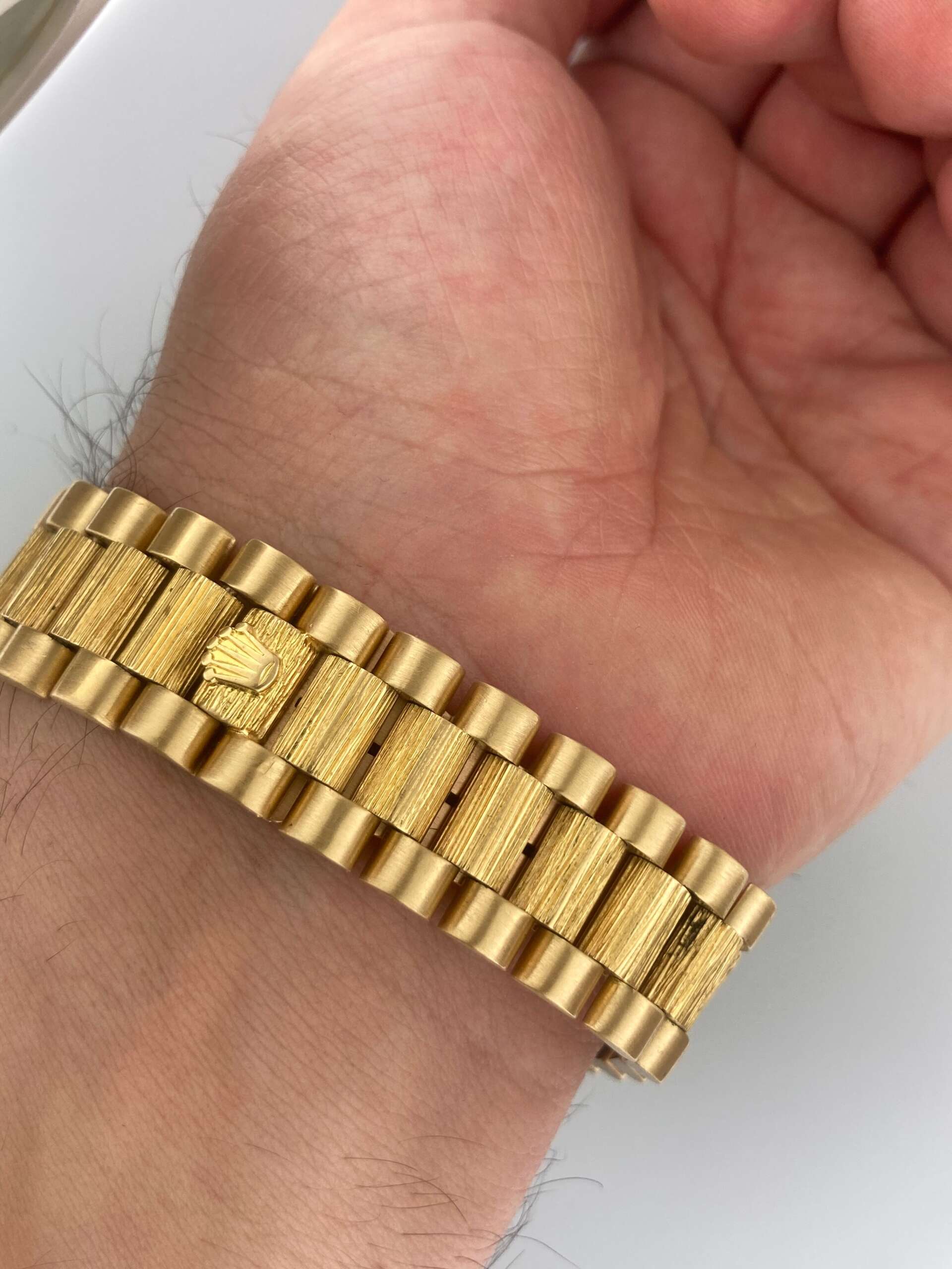Bracelet/Strap: 18k Solid Yellow Gold President Bracelet Bark