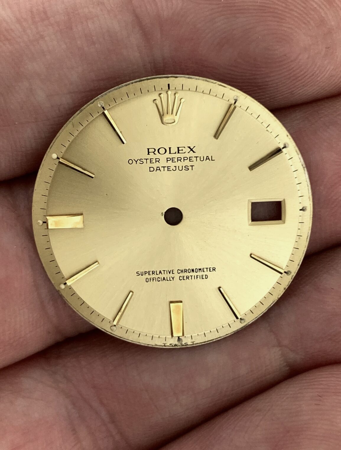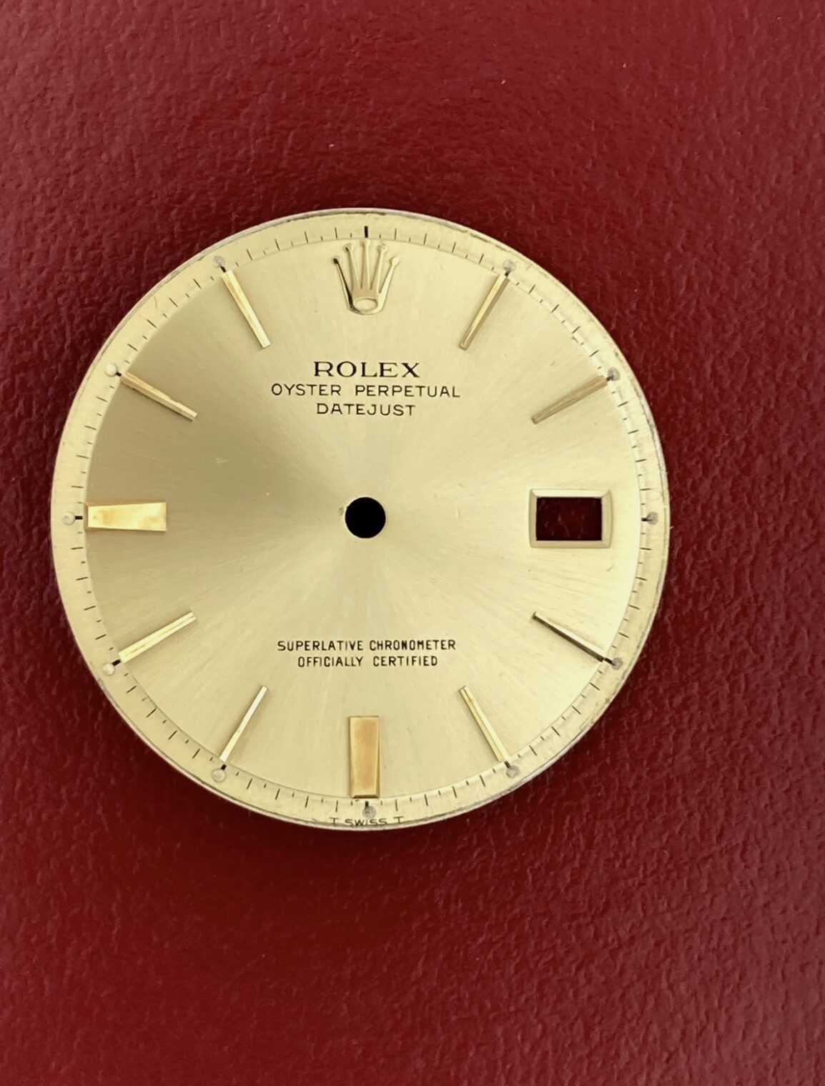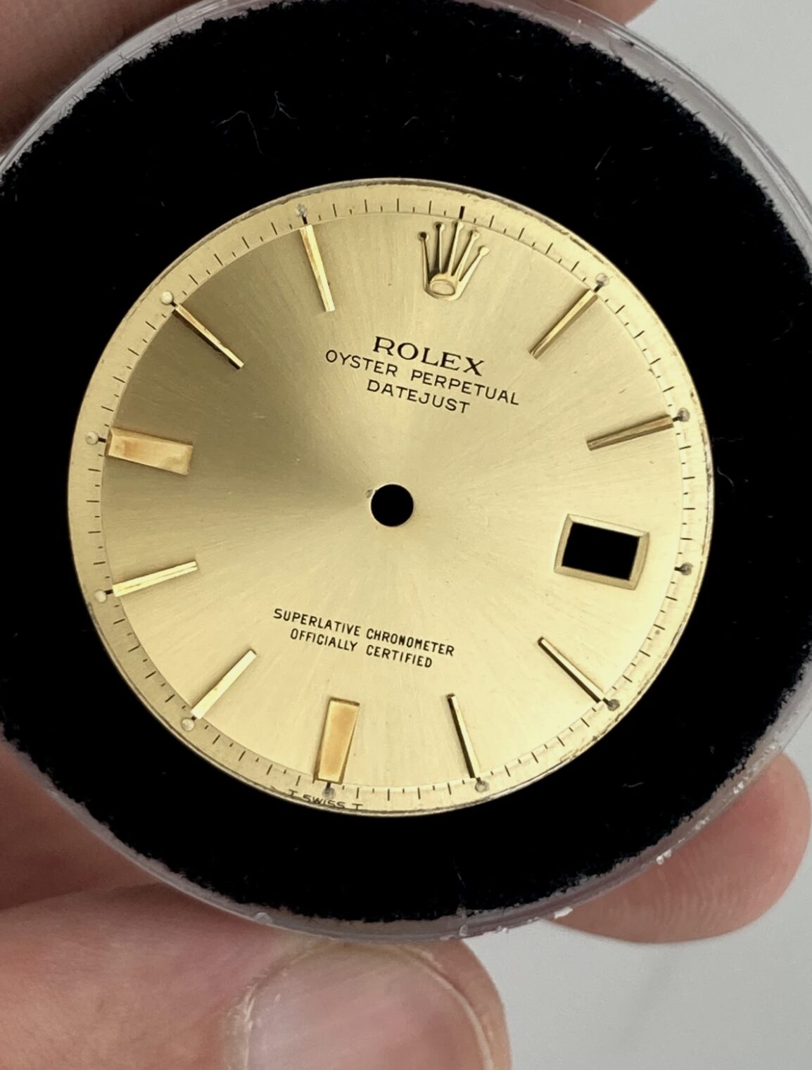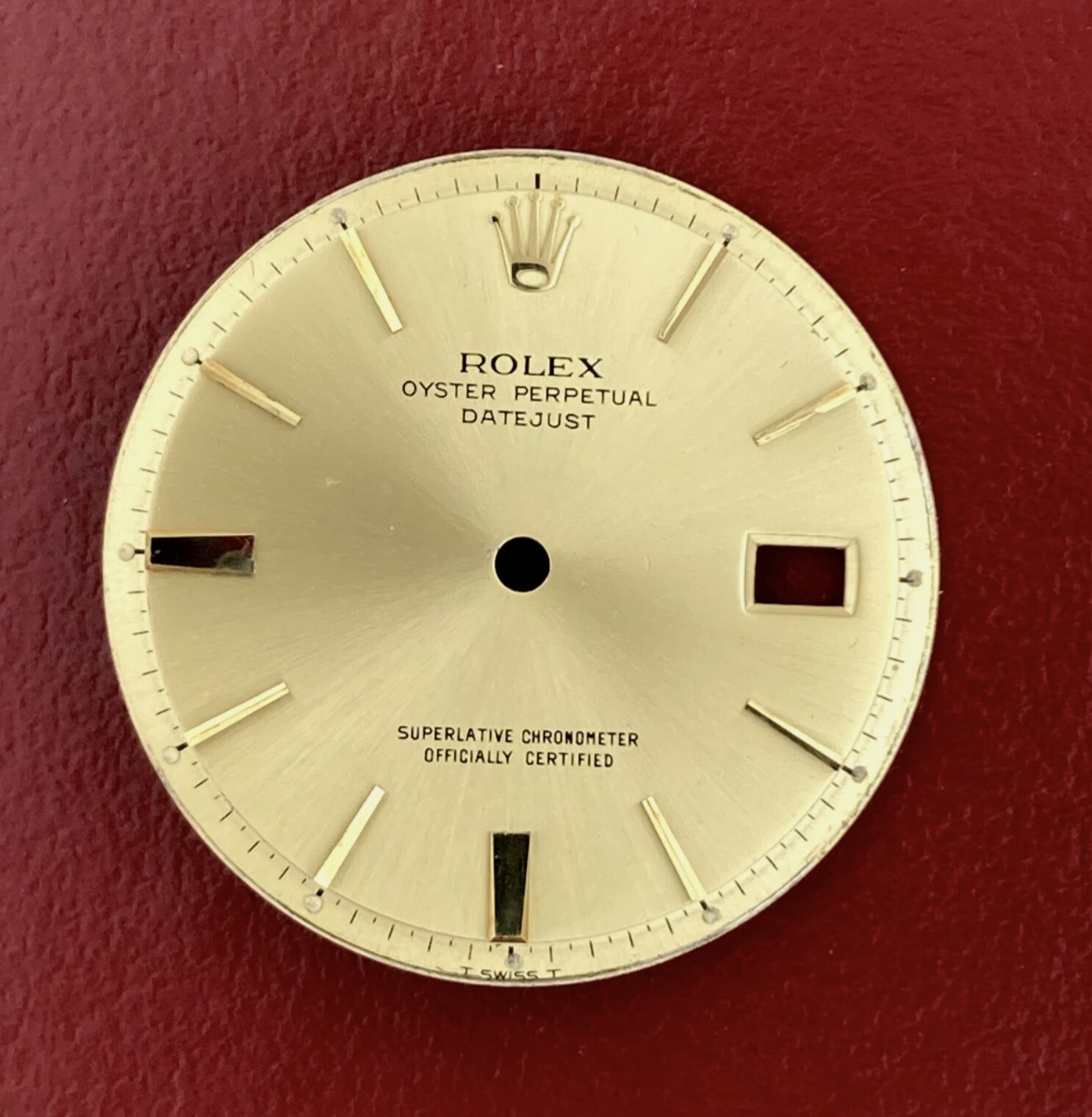 The champagne dial features non-numeric hour marks and is compatible with Rolex Datejust 1600, 1601, and 1603 models.