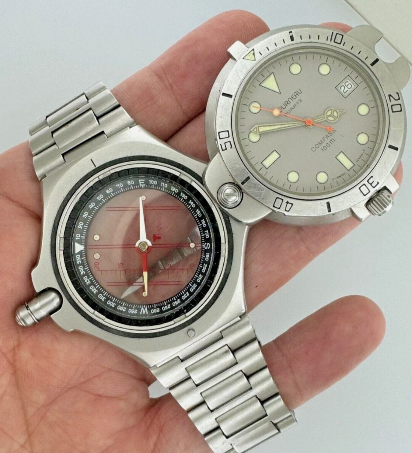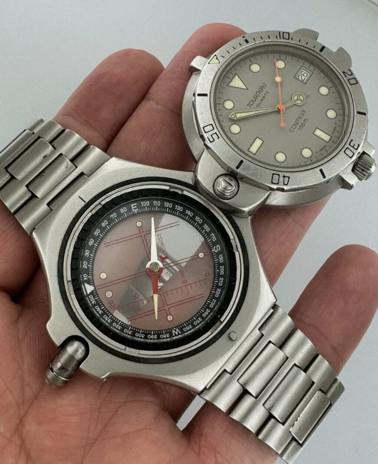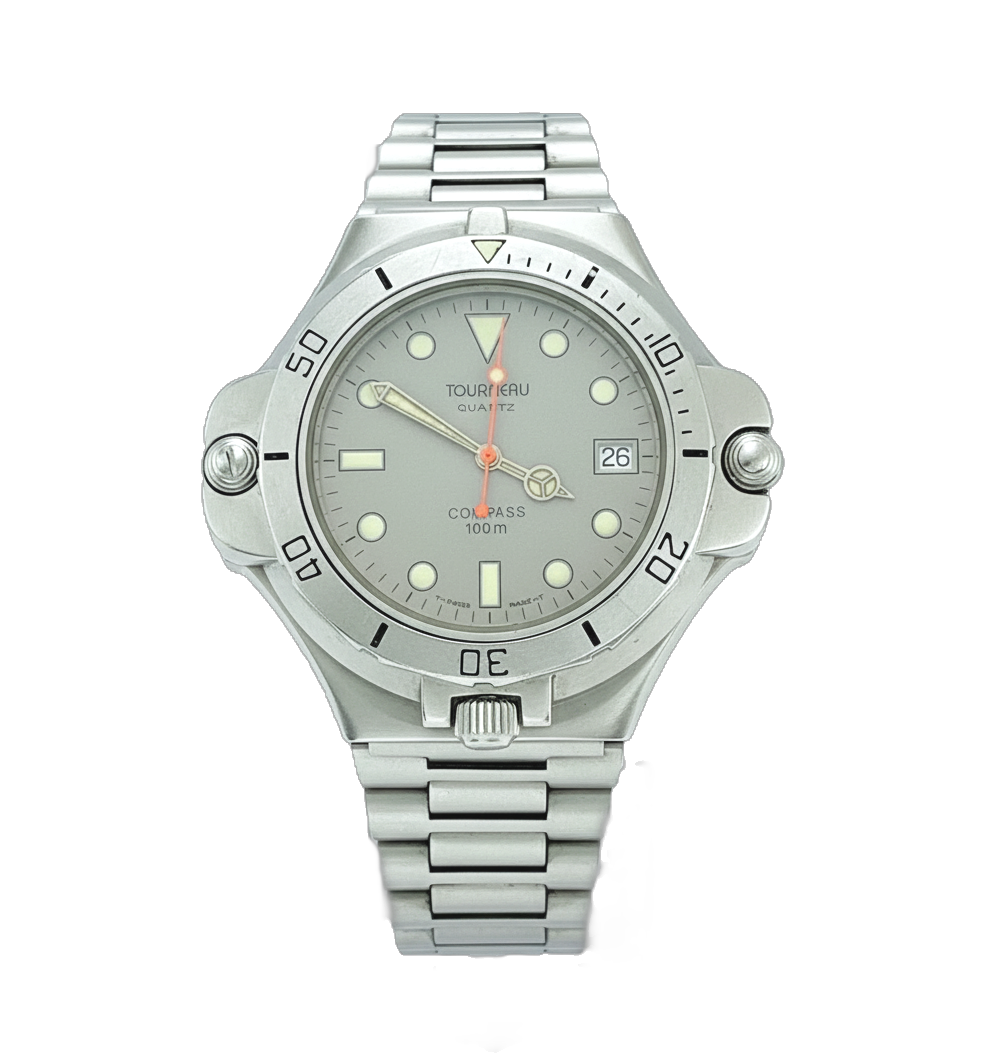 Tourneau 170 Compass 47mm Quartz Date Steel Grey Dial Rare Reversible Vintage