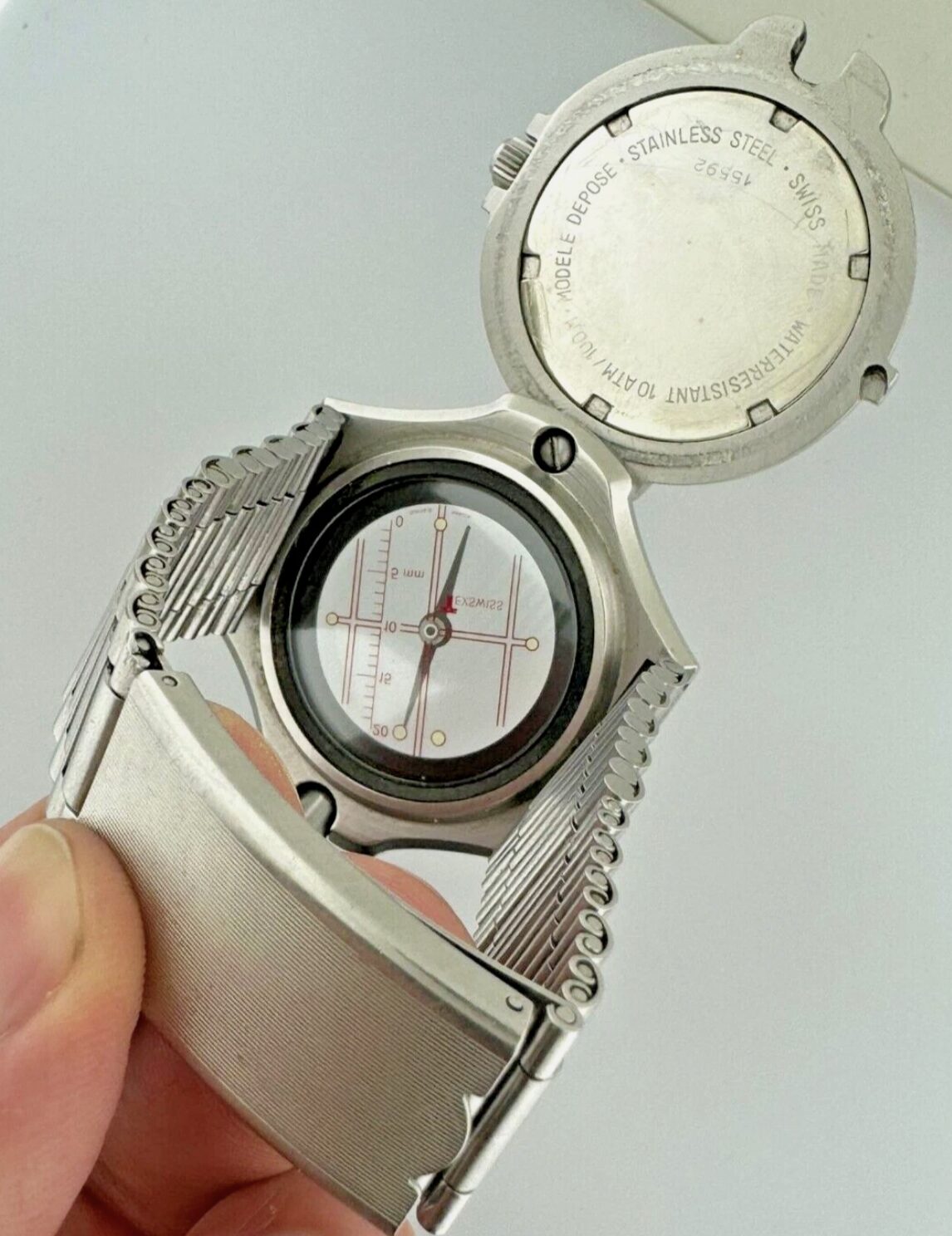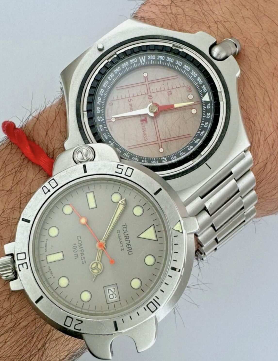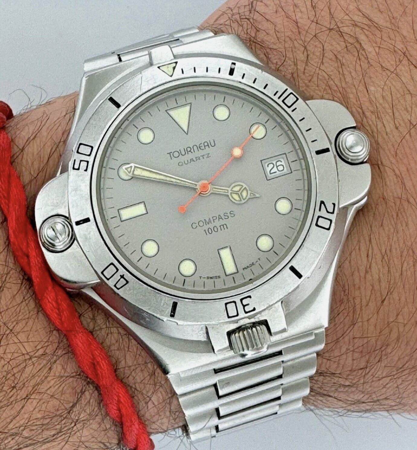 Tourneau 170 Compass 47mm Quartz Date Steel Grey Dial Rare Reversible Vintage